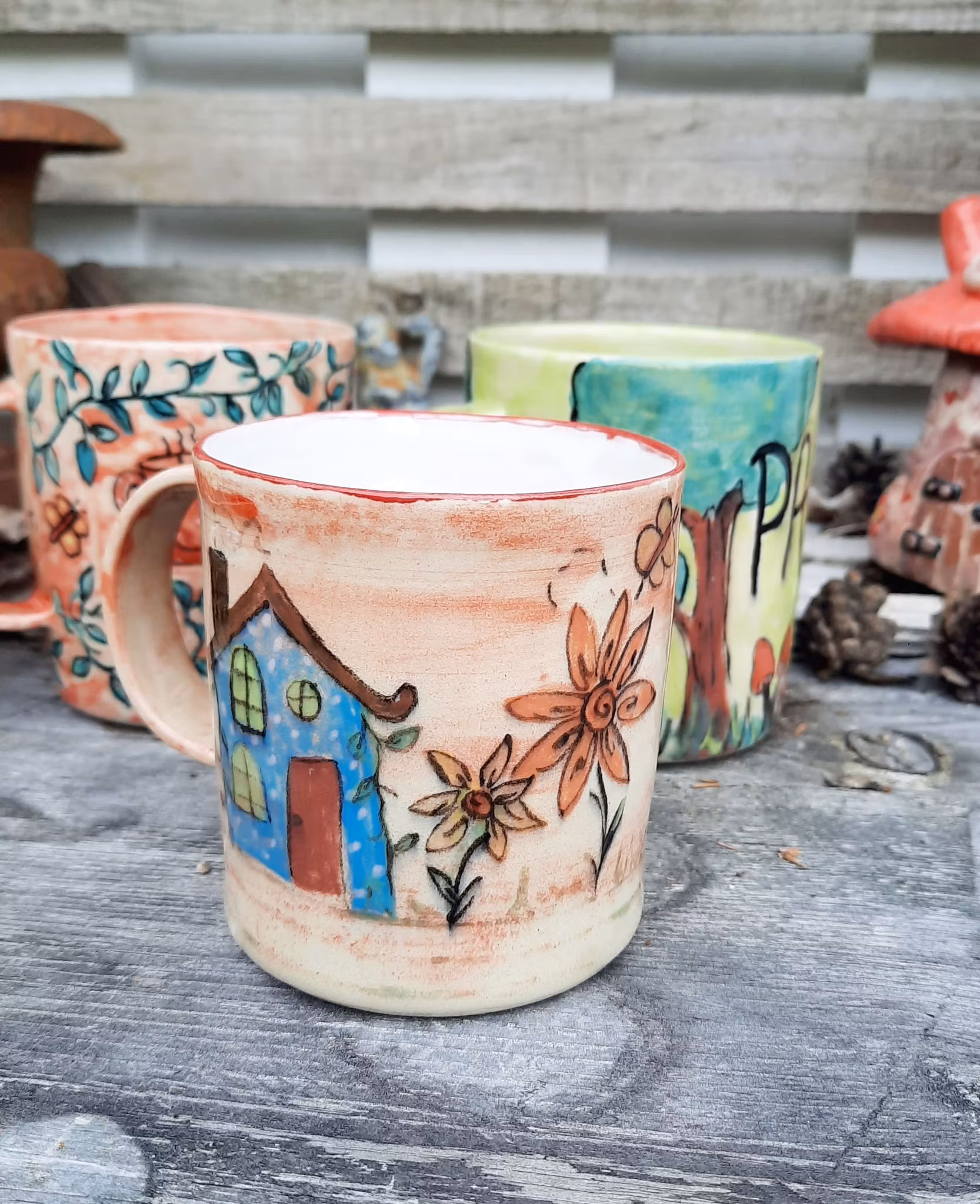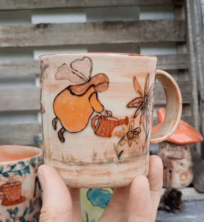 Varje gång du använder den handgjorda muggen ser du den söta lilla älvan vattna sin trädgård. Som en tavla fast på en handdrejad keramikmugg som inte bara är vacker att se på utan också härlig att dricka ur. Omslut dina händer runt muggen och njut en stund av god dryck.