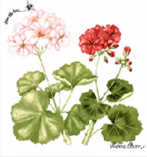 En av de vackraste krukväxterna pelargon dekorerar de fina kaffeservetterna och en liten humla. Servetterna med det fina motivet ger en lantlig känsla och blir mycket fint att duka med.